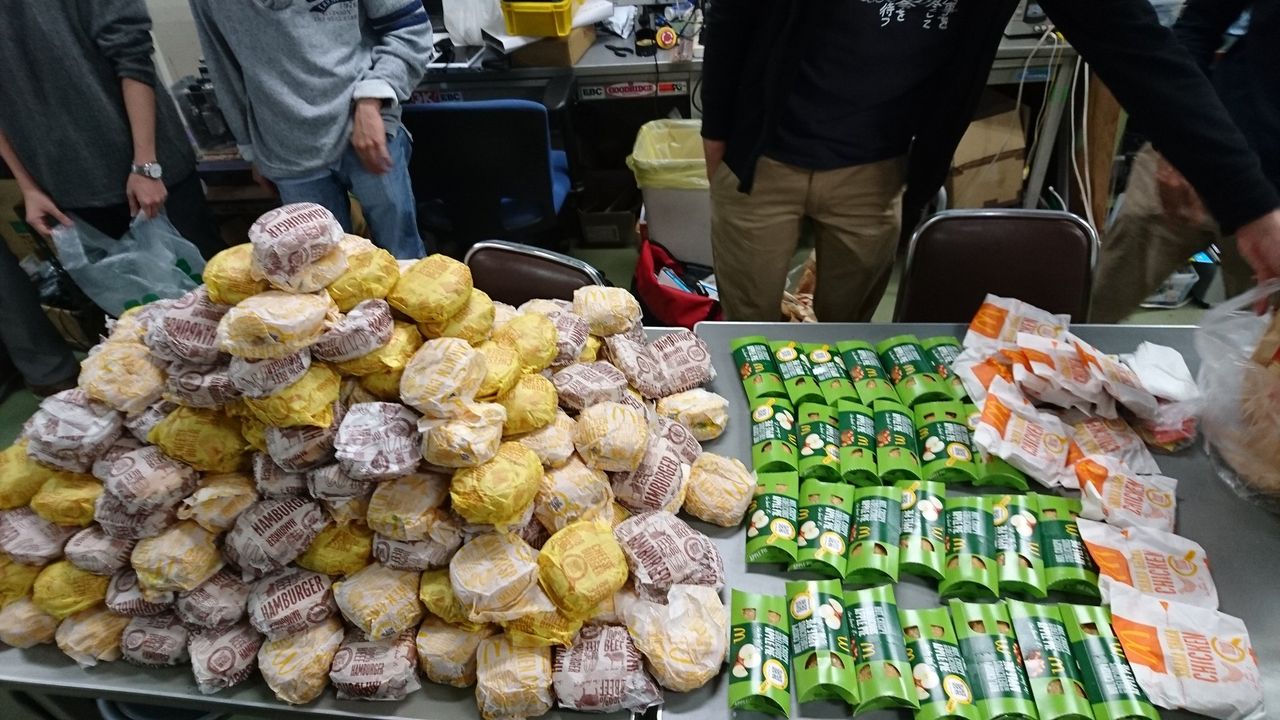 (ハンバーガー:308個 チキン:11個 パイ:26個)